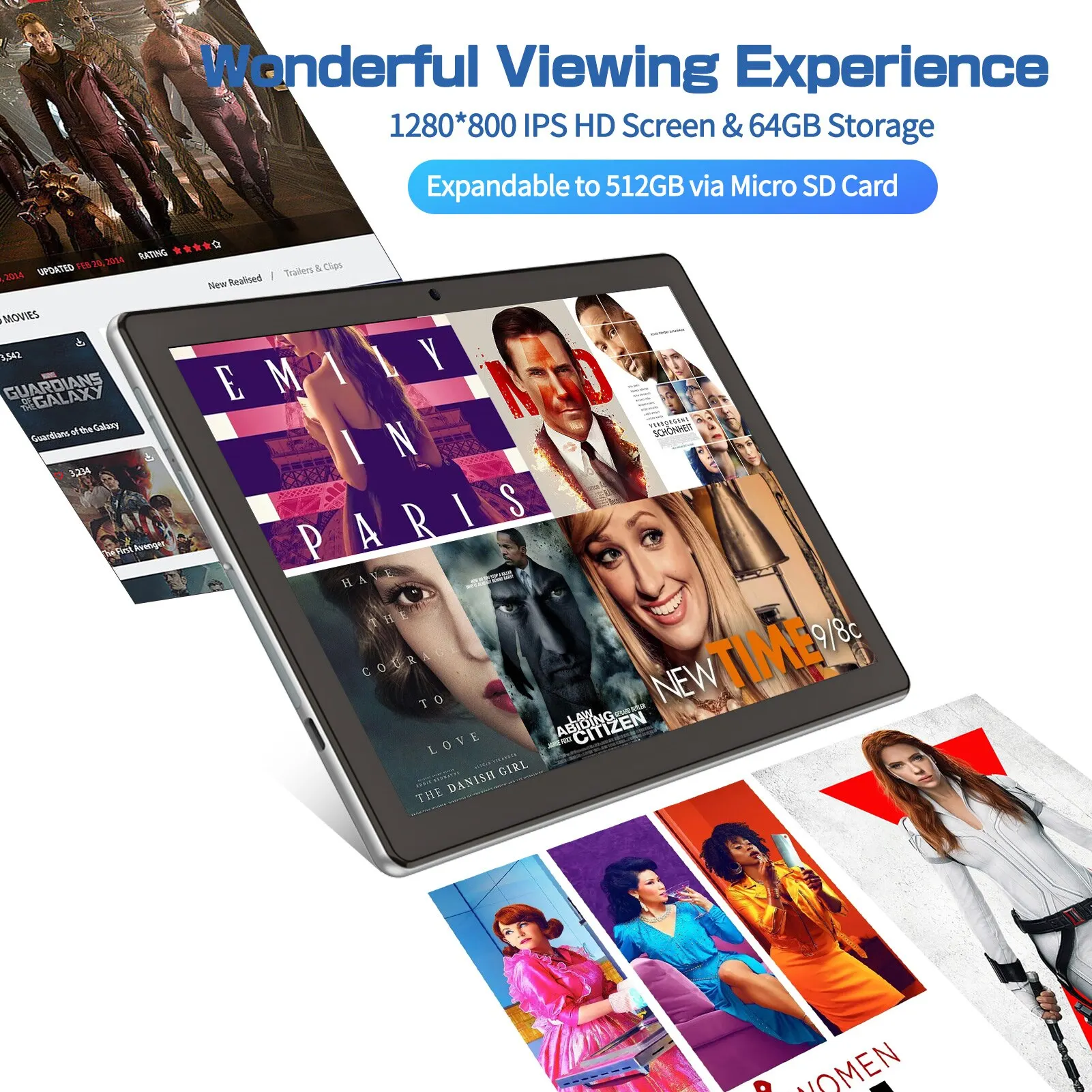 [HD IPS Display & Dual Camera] – The 10.1 inch HD tablet features a high-resolution 1280*800 IPS display and the option of “reading mode” also reduces harmful light to the eyes. Dual cameras (8 MP rear, 2 MP front) for great photos and video chats.